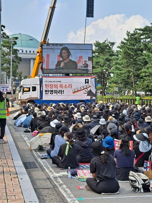 지난 26일 제6차 교사추모집회에서 최교진 세종시교육감은 무대 위에서 9월 4일을 "교육공동체 회복의 날"로 선언했다. 검은 옷을 입은 아스팔트 위 교사들 목소리에 공감한 결과다. 조희연 서울시교육감과 서거석 전라북도교육감도 뜻을 같이하며 교사들을 지지했다.